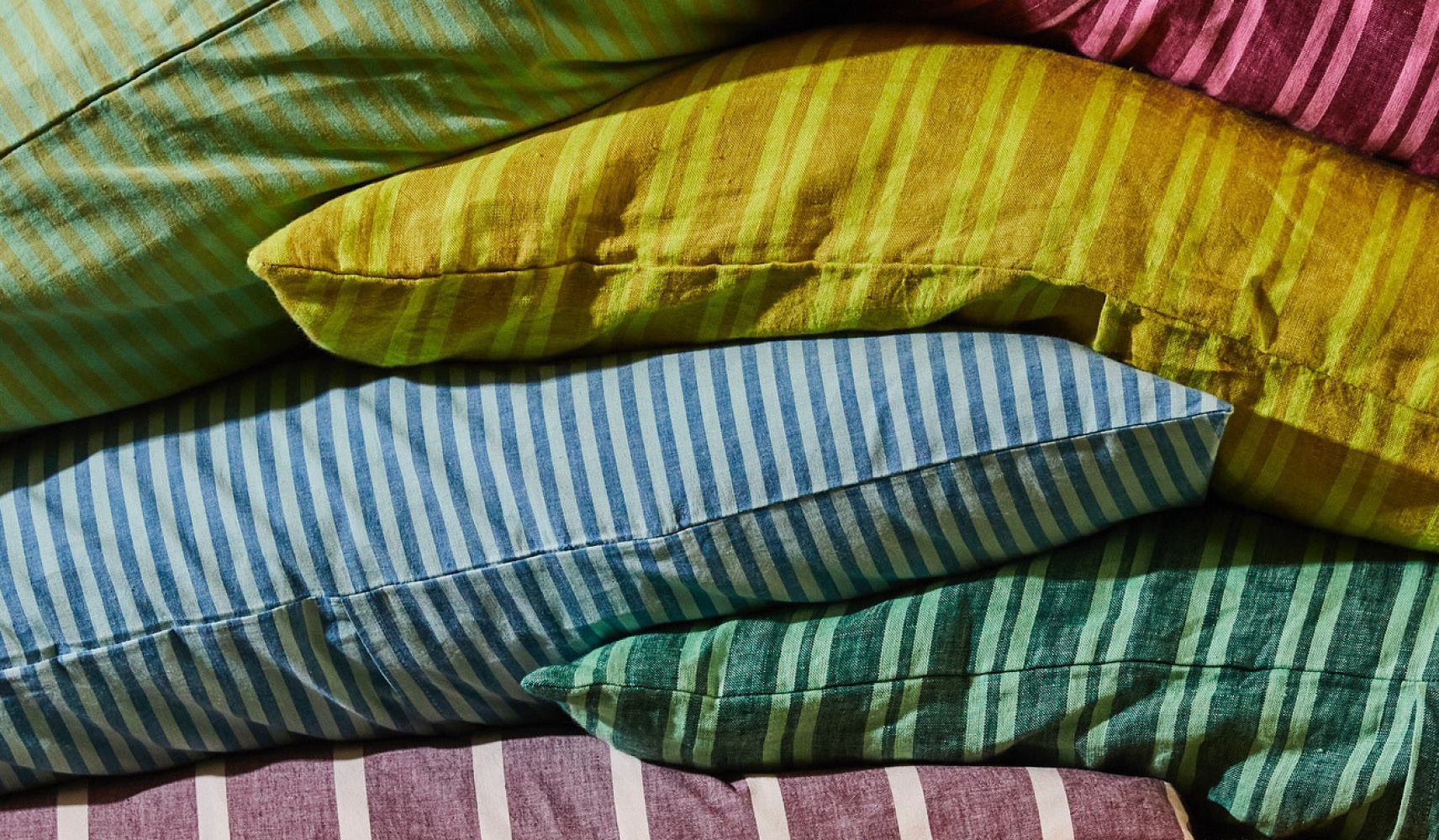 Provide a subtle update to core print ranges by pairing together tonal shades of browns, pinks, yellows, greens or blues to bring a warmth to surface pattern as well as a ‘grown-up’, more polished take on stripe patterns. While chunky stripes are perfect for bolder upholstery and statement soft furnishings, thin ticking-style stripes work best for lighter bedding and curtain textiles.