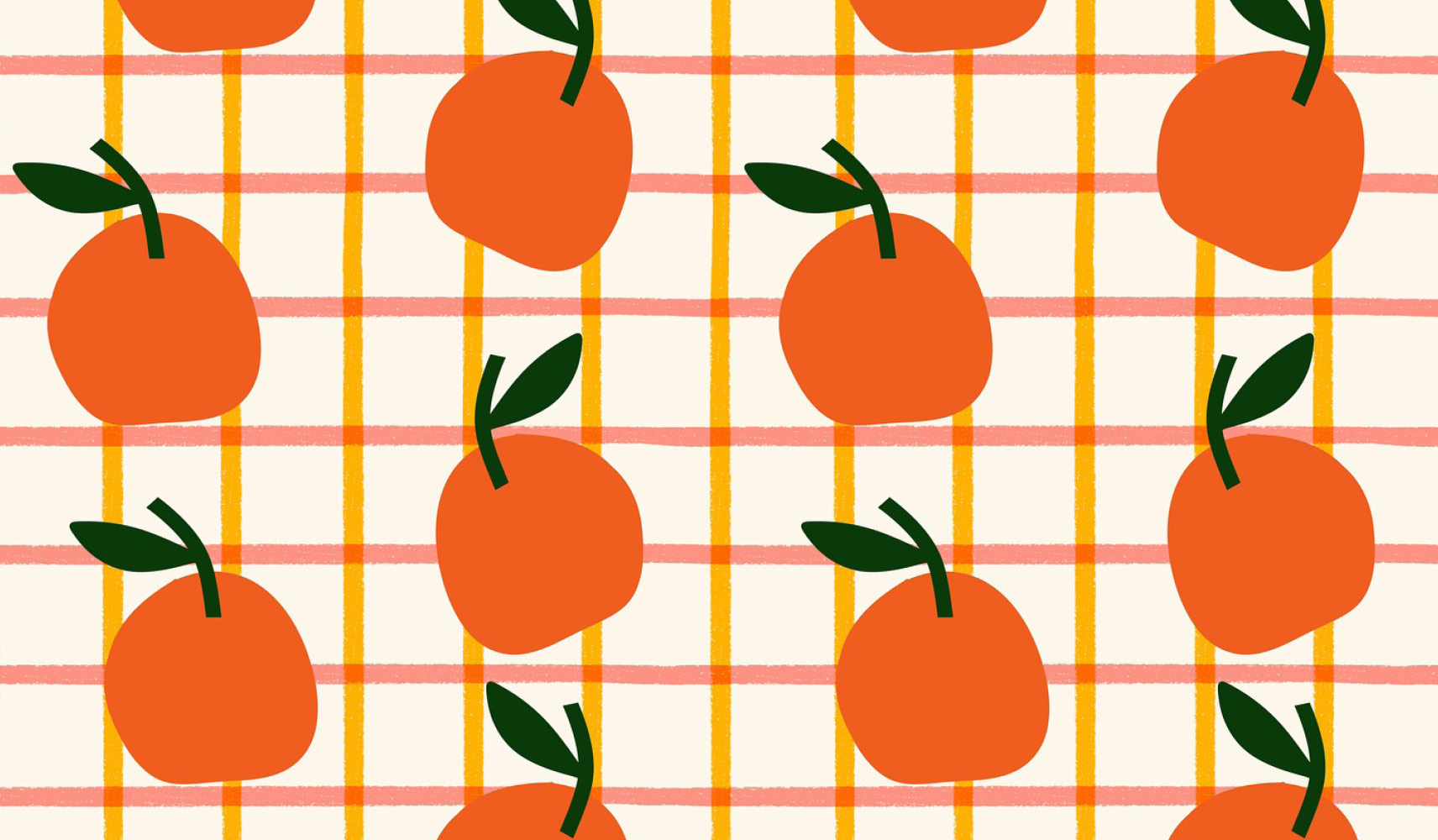 Moving on from familiar strawberry motifs, a broader representation of trans-seasonal bounty in imperfect, hand-drawn styles is becoming key. Experiment with pairing grid structures with vegetables like fennel, garlic and mushrooms and fruits like apples, pears, watermelon and dragonfruit to update designs.